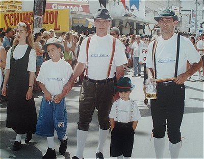 Desfile na Summerfest em Domingos Martins - ES, dos descendentes da primeira imigração alemã. (Kátia A. Effgen(irmã), Rauny Gütller Effgen(sobrinho), Helder José Effgen(irmão), João Paulo Meyer Effgen(meu filho) e eu Almir Paulo Effgen) |