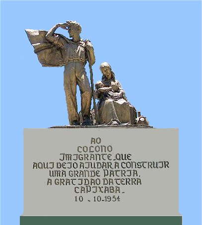 Monumento ao Imigrante na Praça Dr. Arthur Gerhardt. "AO COLONO IMIGRANTE, QUE AQUI VEIO AJUDAR A CONSTRUIR UMA GRANDE PÁTRIA, A GRATIDÃO DA TERRA CAPIXABA." 10.10.1954 |